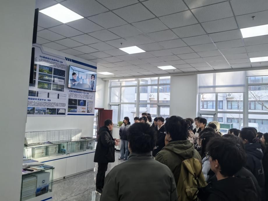 唐讯信息教育研究中心副经理郭毅以“企业发展与技术深耕”为主题,系统梳理了公司的发展历程、核心业务布局及核心竞争优势。作为河北省重点高新技术企业,唐讯信息深耕工业互联网、智能网联汽车等前沿领域多年,累计斩获多项国家级资质认证与行业权威奖项,技术实力与行业影响力备受认可。随后,郭毅带领师生前往燕山大学(鹿泉)研究院展厅,重点展示了公司与高校联合研发的两大创新成果——“工业互联网智能产线管理平台”与“数字孪生低代码平台”。通过动态演示、案例拆解与技术溯源,学生直观洞悉了产教协同开发的全流程,深刻体会到“校企合作、联合攻关”模式在加速技术成果落地、破解产业实际难题中的关键作用。