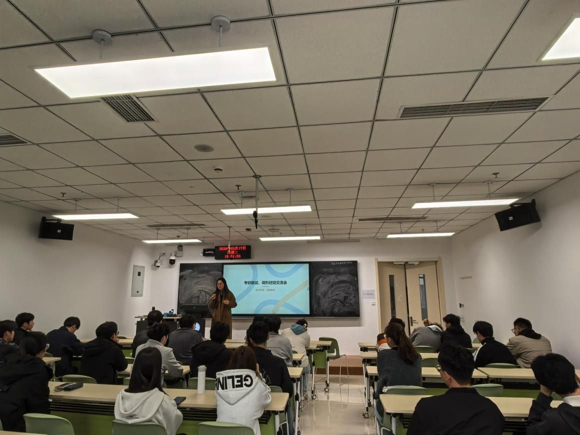 交流会现场气氛热烈,同学们认真聆听、详细记录。在互动环节,刘老师对同学们提出的关于调剂系统操作、跨专业复试准备等具体问题进行了耐心解答,不仅解决了大家的实际困惑,更有效缓解了考前的焦虑情绪。