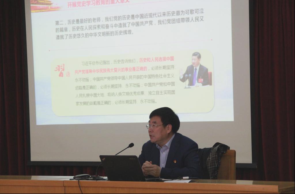 王凤鸣校长要求,广大师生充分认识开展党史学习教育的重大意义,认真研读党史基本著作,全面了解中国共产党百年奋斗的光辉历程和历史性贡献,深刻把握开展党史学习教育的重点,学懂弄通做实习近平新时代中国特色社会主义思想。王凤鸣校长以在党史学习教育中“明理、增信、崇德、力行”为题,深情回顾了中国共产党的百年历程,讲述了中国共产党的伟大征程,解析了党的百年伟大历程蕴含的智慧和力量。在百年征程中,中国共产党创造了中华民族从站起来到富起来,带领中华民族迎来了从富起来到强起来的伟大历史,中国共产党带领全国各族人民完成了救国大业、兴国大业、富国大业。