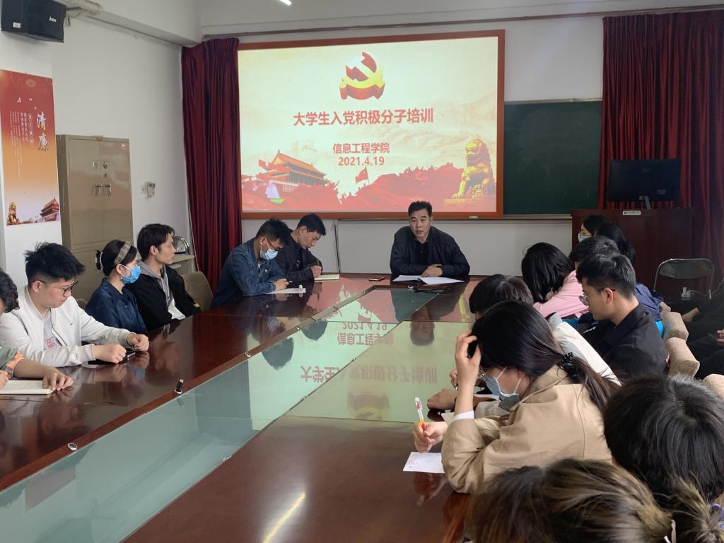 为加强党的组织建设,切实做好入党积极分子的培养、教育工作,把好党员“入口关”,4月15日—19日,按照校党委组织部相关要求,信息工程学院举办了2021年春季入党积极分子培训班。信息工程学院114名入党积极分子参加培训。