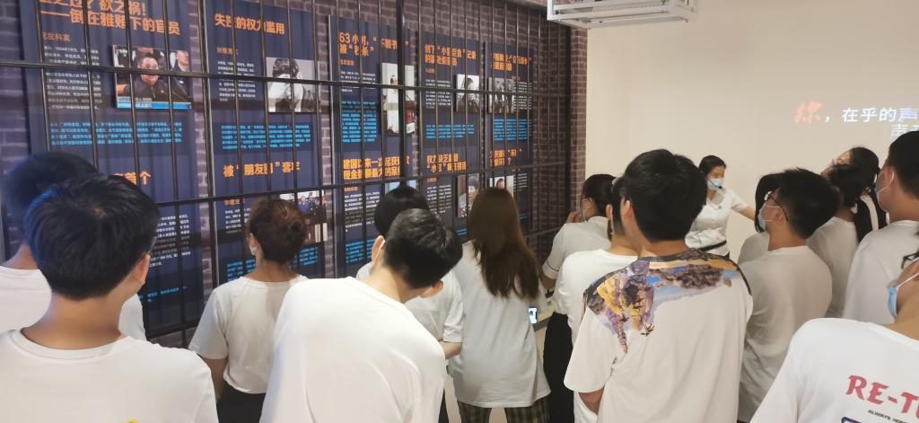 通过听现场讲解、看历史短片、重温入党誓词,研究生党支部全体党员接受了一次深刻的党性教育,坚定了入党初心,明确了努力方向,增强了前进动力,让灵魂受到了再次洗礼和升华。首先,在教育基地讲解员的引导下,大家从“思、警、筑、行”四个方面对中国共产党“为什么行”有了更深刻的认识。一是“思”,讲述了中国共产党成立以来的各个历史时期的反腐历史,令人深思。二是“警”,通过鲜明的真实案件生动的展示了贪腐之害,启示我们应廉洁自律,警钟长鸣。三是“筑”,介绍了中央政治局严格贯彻落实从严治党的相关要求,引导我们筑牢思想防线,强基固本。四是“行”,以党员干部在自然灾害面前冲锋在前、坚守责任的实践,教育我们应当坚守服务人民的社会责任。