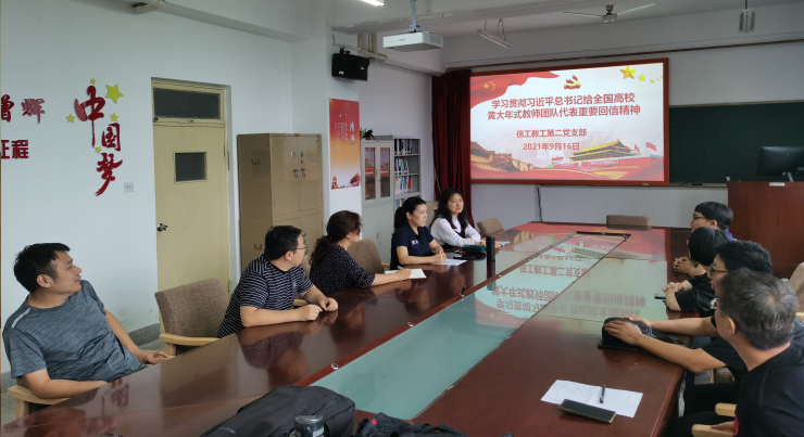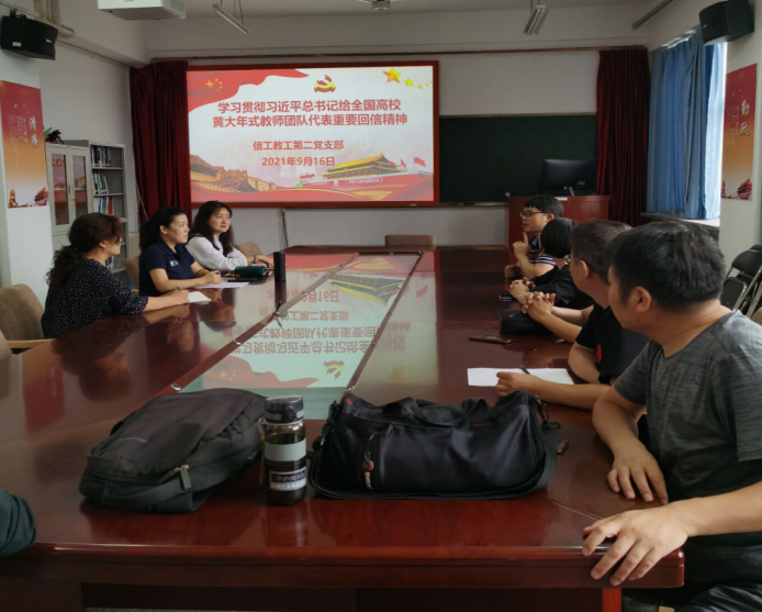 按照河北地质大学2021年秋季学期教职工政治理论学习计划安排部署,落实师德师风建设月学习主题:学习贯彻习近平总书记给全国高校黄大年式教师团队代表重要回信精神。信工学院教工第二党支部于2021年9月16日下午4点在主楼508会议室召开了专题学习组织生活会。