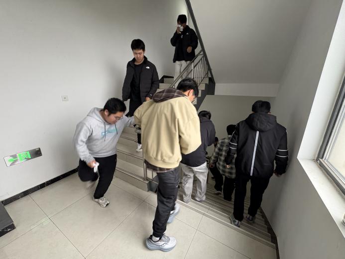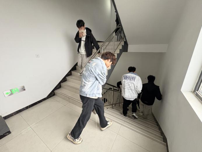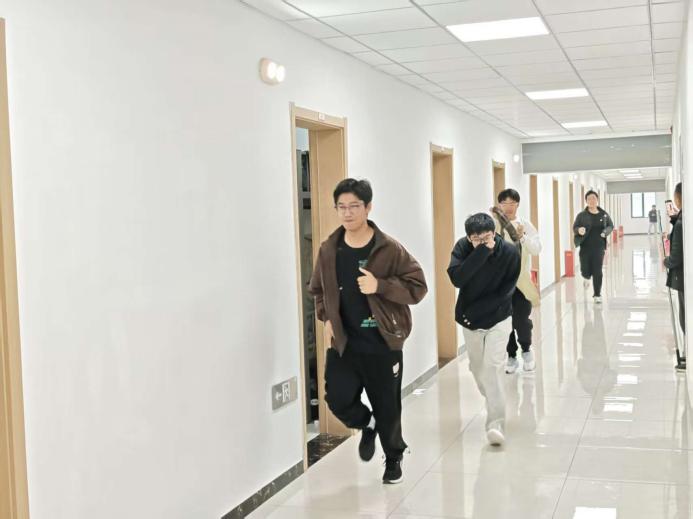 整个过程中,同学们沉着冷静,互帮互助,没有出现拥挤、推搡等现象,充分展现了信息工程学院学子良好的纪律性和临危不乱的心理素质。短短3分26秒,全体参演新生便全部从六楼安全撤离至指定的一楼集合点。
