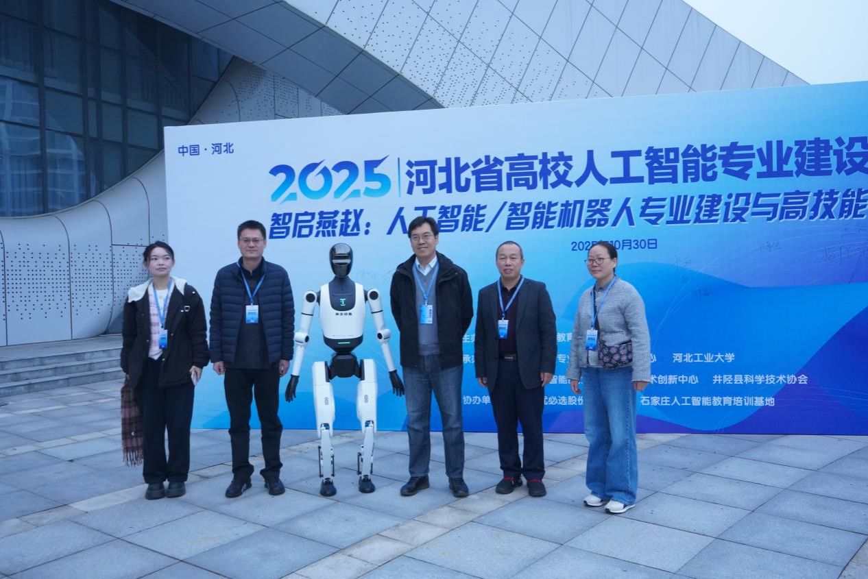 10 月 30 日,由河北省高等教育学会主办,河北省高校专业建设研究服务中心,河北工业大学,井陉县科学技术协会承办的河北省高校人工智能专业建设研讨会在石家庄市人工智能教育基地(井陉县科技馆)成功举办,深圳市优必选股份有限公司,石家庄人工智能教育培训基地提供了全方位的支持。本次会议以 “智启燕赵:人工智能/智能机器人专业建设与高技能人才培养” 为主题,汇聚省内外学界专家与产业精英共筑 AI 教育新生态。河北地质大学副校长赵永强带队,教务处、信息工程学院教师参会,深度参与专业建设研讨与合作交流。