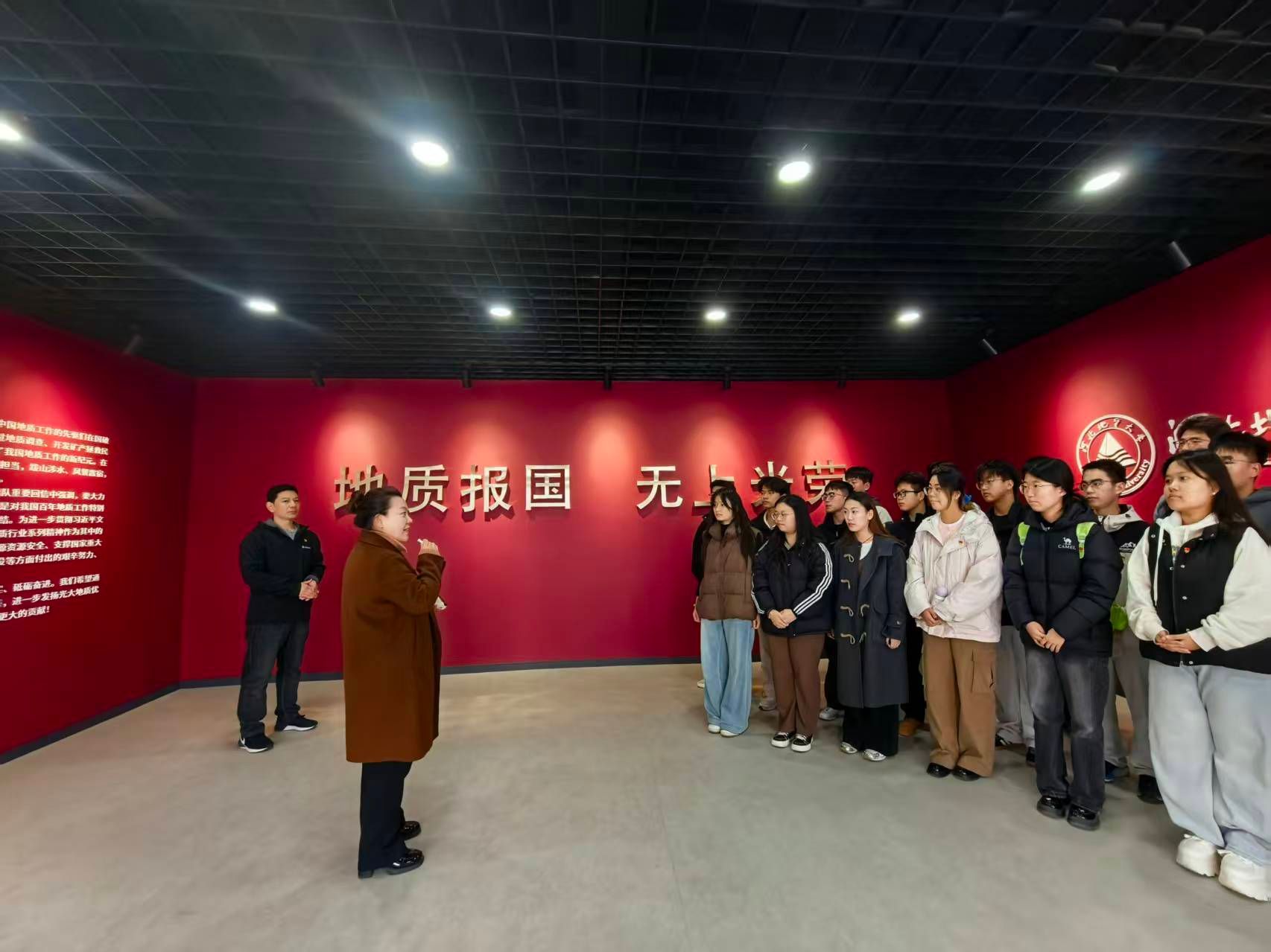 在马克思学院党委书记吴聪聪老师的带领下,党员们参观了思政馆“地质卫国、寻路奠基”、“立国兴邦、探路先行”、“地质富国、开路奋进”以及“地质强国、拓路不停”四个展厅,通过不同历史时期的大事记回顾了中国地质人百余年来,秉持“地质救国”理想,以强烈的责任担当,跋山涉水、风餐露宿,为国家寻找宝藏的奋斗光辉历程,创造了彪炳共和国史册的非凡业绩。
