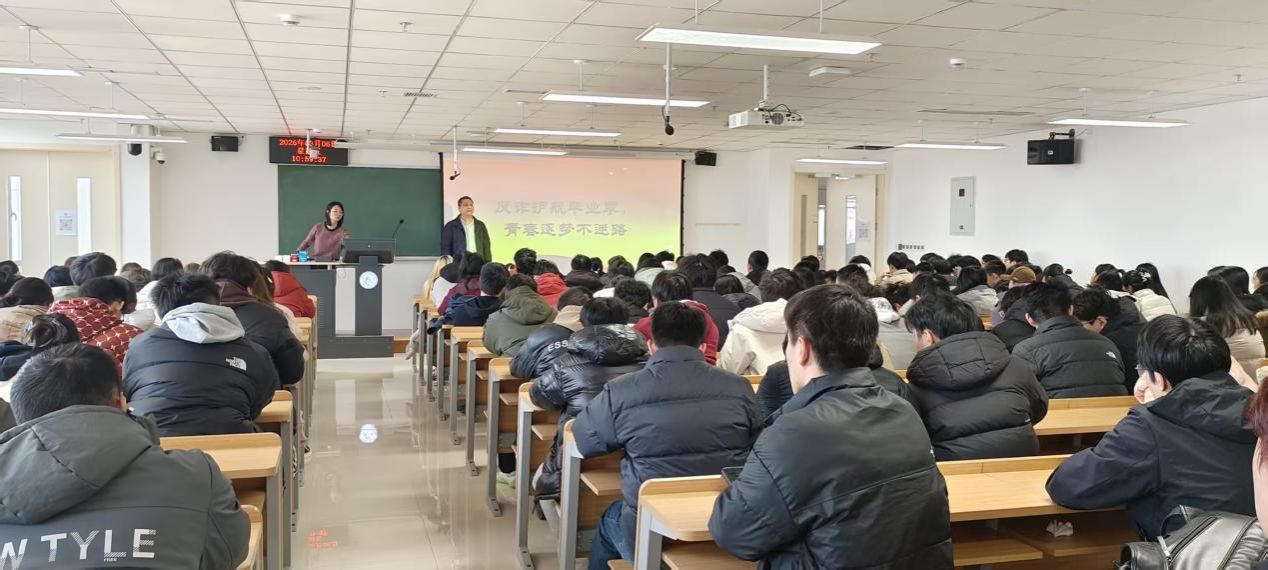 针对学生成长保障,学院开设心理健康教育课、个人安全保障课与反诈教育宣传课。心理健康教育课通过学期初心理筛查、主题班会、重点学生谈心谈话等方式,帮助学生缓解开学焦虑,掌握情绪管理方法,筑牢心理防线。个人安全保障课围绕意外伤害防范、食品健康、春季传染病预防等重点内容开展安全教育,引导学生养成文明健康的生活习惯。反诈教育宣传课邀请民警与计算机安全专业教师授课,结合《中华人民共和国反电信网络诈骗法》,拆解校园贷、刷单诈骗等常见骗局,讲解钓鱼网站识别技巧,提升学生防骗识骗能力。