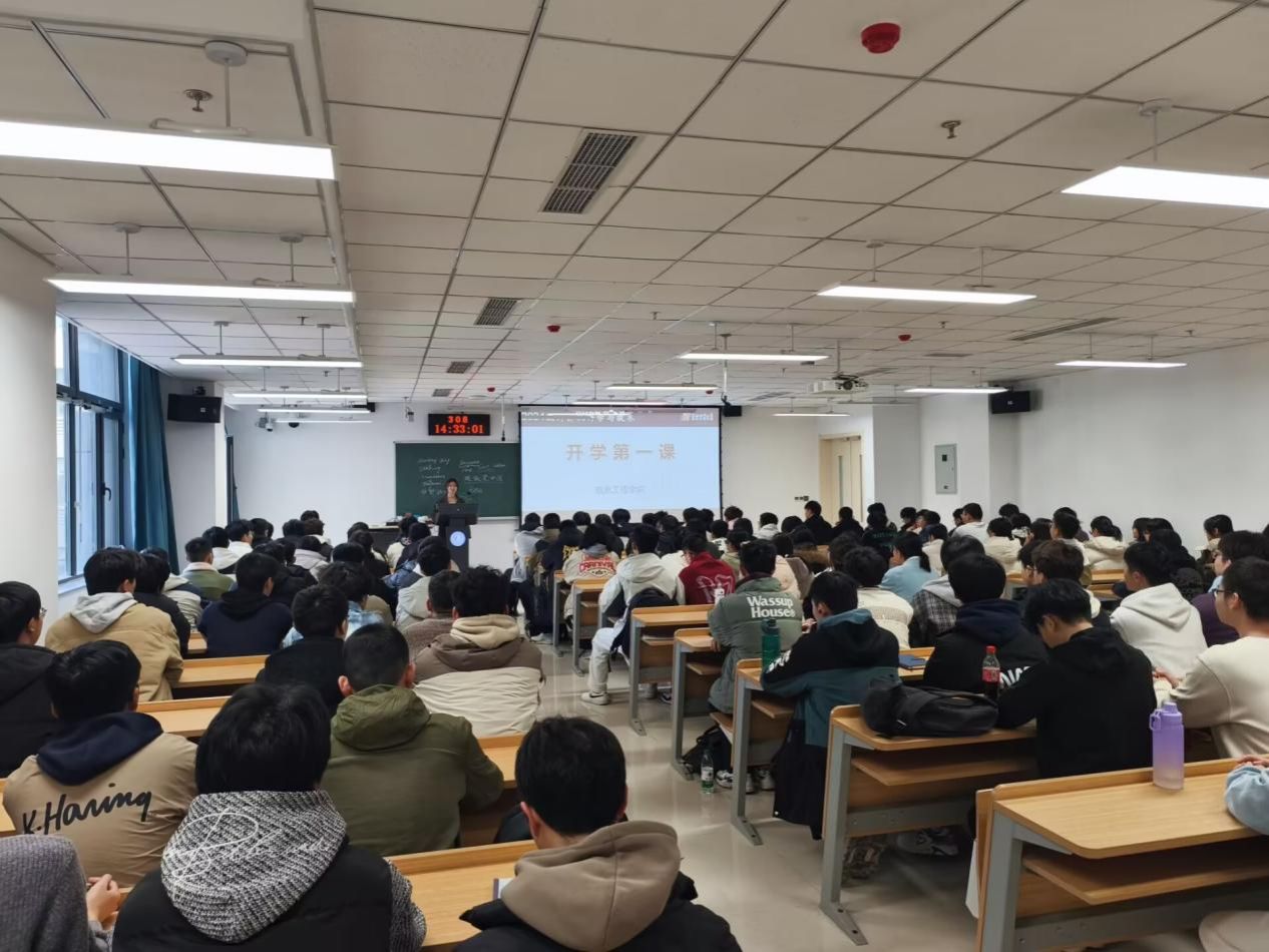 本次“开学第一课”以思想引领为核心,开设爱国主义教育课与思想政治引领课。爱国主义教育课紧扣新时代教育强国战略部署,以习近平新时代中国特色社会主义思想为指导,引导学子深刻认识自身在时代发展中的使命担当,将“强国有我”的誓言转化为奋进动力。思想政治引领课以小班化互动班会为载体,围绕“数字中国”建设、科技伦理规范等内容展开研讨,结合世界观、人生观、价值观塑造,帮助学生校准人生航向,确保理想追求与时代发展同频共振。