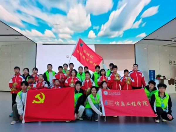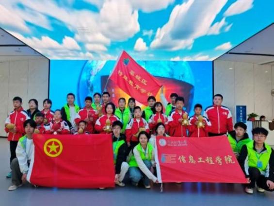 信息工程学院高度重视此次校地共建活动,组织青年志愿者做好场地协调、现场服务、秩序维护等保障工作,用细心、耐心与爱心为活动顺利开展保驾护航,以实践育人、文化浸润、爱心陪伴的方式,为特殊青少年送上温暖与关怀。活动中,学院志愿者与特教学校教师全程携手,细心看护、耐心引导,时刻关注孩子们的身体状况与参观体验,为孩子们的 “探知之旅” 保驾护航,同时还为每位小朋友赠送了小恐龙玩偶,一份小小的礼物,承载着满满的关爱与祝福。