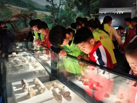 特教师生在博物馆讲解员的带领下,有序参观我校地质博物馆恐龙厅、大美河北等特色展厅,沉浸式感受地质奥秘与人文底蕴。讲解员结合特教学生的认知特点,用通俗易懂、生动形象的语言讲解恐龙的生活习性、地球的演化历史,以及远古生物的奥秘,让孩子们在轻松的氛围中收获知识、感受乐趣。