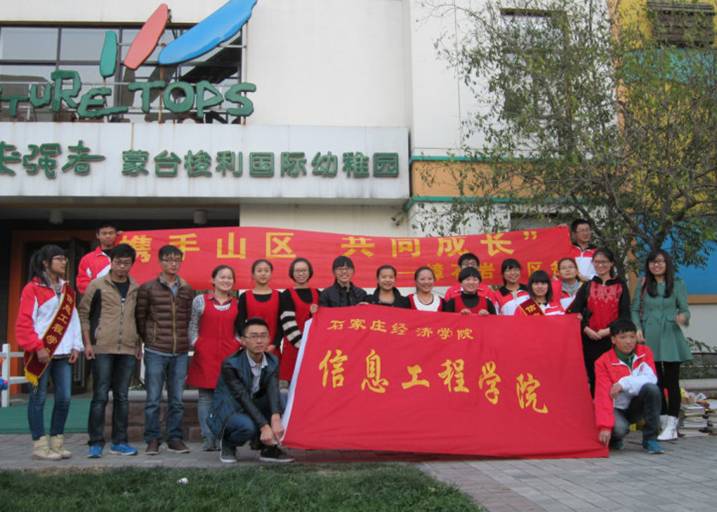 为弘扬中华民族的传统美德,同时也为了激发现代学生献爱心的热情,石家庄经济学院信息工程学院于10月15日起举办“滴水成海,心系深山”让嶂石岩贫困儿童“冬天不再冷”的公益捐赠活动。这次活动得到了同学们的大力支持并于2013年11月6日前往未来强者幼儿园进行募捐活动。前往参加此次募捐活动的有信息工程学院团委副书记谢树伟、团委常委叶超、生活部部长何玉硕、许曼、张亚平和办公室、宣传部、编辑部代表及信息工程学院大一学生代表。