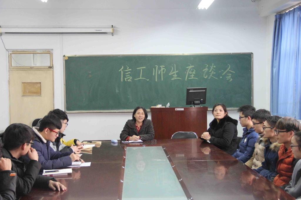 2016年12月28日下午3点,信息工程学院在主楼507召开师生座谈会。学院党委书记王春恋,辅导员唐雪雷、张丽娜、潘媛媛出席座谈会,来自学院三个年级的30余名学生代表参加了座谈会。座谈会由党委书记王春恋主持。