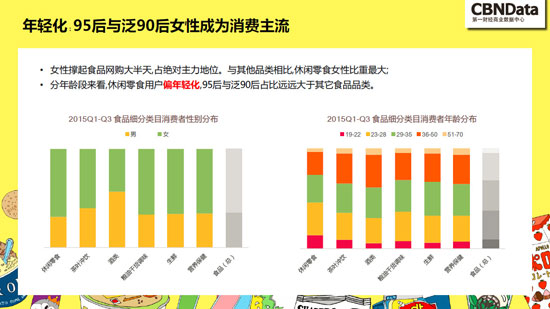 当天,第一财经商业数据中心(CBNData)发布了《中国线上零食消费趋势报告》(以下简称为《报告》),报告基于阿里巴巴大数据,显示休闲零食占据线上食品销售首位,其中,95后和泛90后女性逐渐成为消费主流。