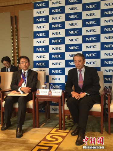 右:NEC全球董事长远藤信博。左:NEC常务执行董事松木俊哉。中新网吴涛 摄